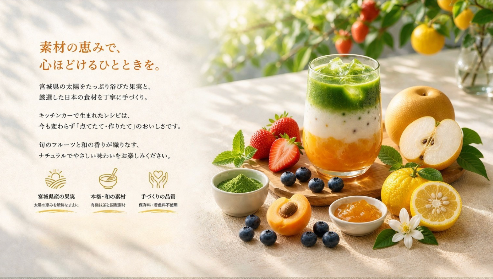 Sunny Apricotは、お茶をもっと自由に、身近に楽しめるような時間をお届けするキッチンカーです。
